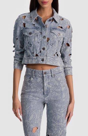 Embroidered eyelets punctuate a floral-embroidered jacket crafted from nonstretch cotton denim for a crisp fit with every wear.