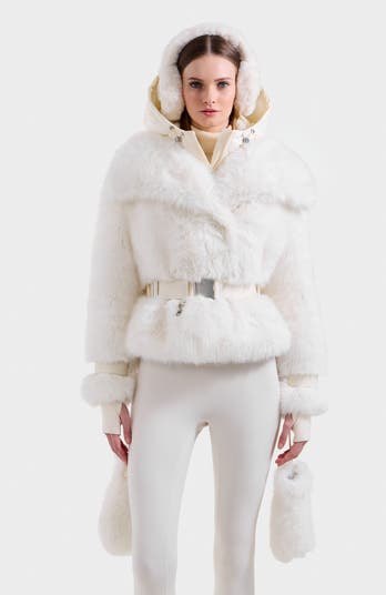 The CHLOE by RUDSAK is a luxurious women's faux fur jacket, designed with sleek vegan leather trims and removable buckle belt for added versatility and style. This statement piece offers a chic, elevated look while providing warmth and comfort during colder months. The adjustable belts allow for a customized fit, making it perfect for layering. With its bold design and refined details, the CHLOE jacket is a must-have for any fashion-forward winter wardrobe.