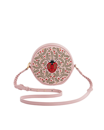 Show your love with our Ladybird Embroidered Circle Bag. Crafted from pink faux pebbled leather, this charming design features a delicate ladybird embroidery, symbolising eternal love. Finished with gold-toned hardware and a plaited crossbody strap that can be adjusted to wear over the shoulder, it’s a playful yet elegant accessory for everyday styling.