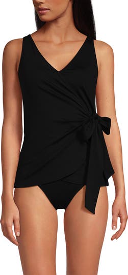 Create your perfect beach look with the surplice tankini. In a lovely V-neckline that accentuates the bust, it features a functional side-tie that can be adjusted to the perfect fit and stylishly keeps your mid-section under wraps. And thanks to the all-around bra with sewn-in cups, you'll also have plenty of bra support in and out of the water.