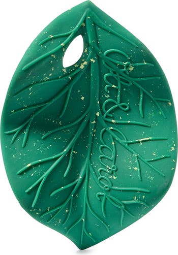 This handcrafted teether is made from natural Hevea-tree rubber with hand-painted details and no holes (so no mold can grow inside.)