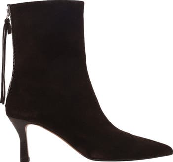 As the seasons change, Maje creates accessories imbued with elegance and sophistication to stylishly set off your look.These suede ankle boots create a sharp silhouette with their pointed toe and covered heel. The zip adorned with laces and the engraved Clover tassel give this model character. A statement piece, designed to enhance both fitted jeans and a flowing dress.