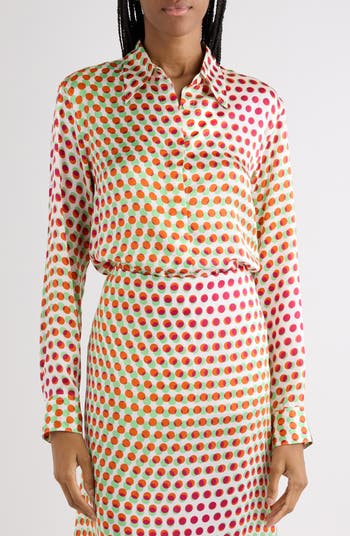 Chowy Optical Layered Polka Dot Silk Button-Up Shirt