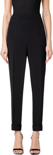 Soft crepe plays smartly against type on these high-rise pants detailed with crisply pressed pleats and folded cuffs.