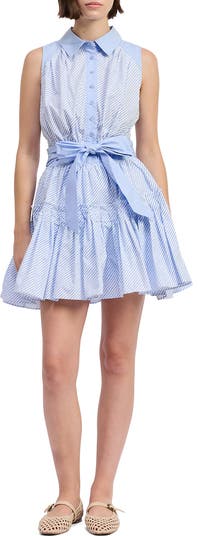 Attached ties hug your waist perfectly as you breeze through your day in this fit-and-flare shirtdress made with diagonal stripes and a flounced hem.