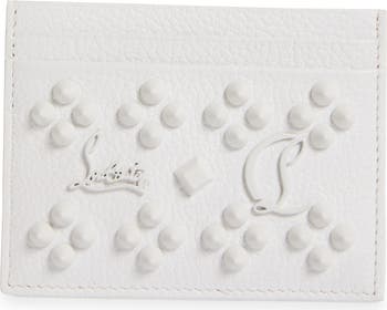 Gleaming studs and logo emblems highlight the textured Italian calfskin of a card case perfect for adding an extra touch of luxe to your favorite bag.
