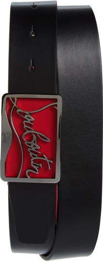 Unexpectedly inspired by the dapper stars of 1950s films, this leather belt is polished with a silvertone buckle scrawled with the Louboutin logo.