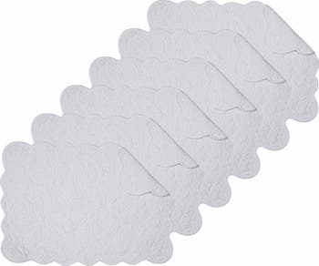 Christiana White Reversible Machine Washable Scallop Quilt Placemats Set of 6