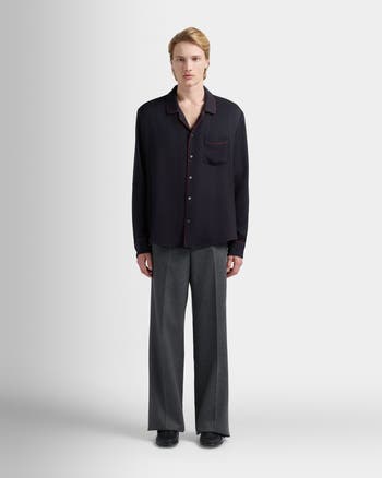 From the Christmas Capsule collection, this navy blue shirt is finished with red piping, a chest pocket and resin buttons with the look of mother-of-pearl.
