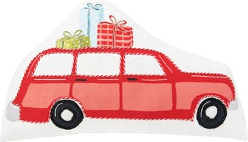 Christmas Car Printed & Embellished Throw Pillow