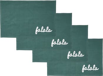 Tabletops get a festive makeover with carol & frank s cheerful holiday linens. The simplicity and minimalist of the solid woven cotton placemats, runners, and napkins feature joyful holiday sayings hand-embroidered in chunky yarn text atop solid cotton slub backgrounds. These casual table linens are ideal for holiday gatherings throughout the season.