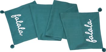 Tabletops get a festive makeover with carol & frank s cheerful holiday linens. The simplicity and minimalist of the solid woven cotton placemats, runners, and napkins feature joyful holiday sayings hand-embroidered in chunky yarn text atop solid cotton slub backgrounds. These casual table linens are ideal for holiday gatherings throughout the season.