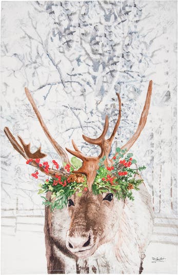 - This towel showcases a detailed printed reindeer with a red holly crown, bringing cheerful personality to your home. The design captures the warmth and whimsy of Christmas with its artistic print and seasonal color palette that brightens any space.