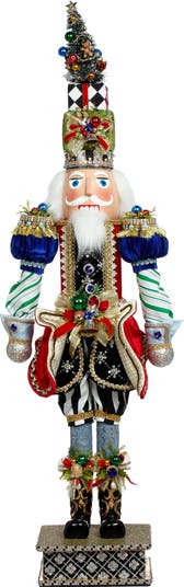 This 61-inch Christmas Tree Nutcracker is a magnificent holiday centerpiece, blending traditional craftsmanship with festive flair. Dressed in luxurious fabrics and adorned with sparkling jewels, ribbons, and ornate trim, it captures the grandeur of classic Christmas décor. Topped with a whimsical miniature Christmas tree crown, this statement piece adds elegance and cheer to any seasonal display.