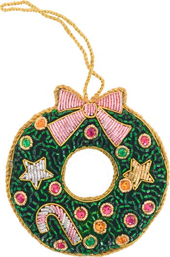 Classic and chic, our Wreath Ornament is adorned with glittering details and metallic fabric. Whether hung on the tree or tied to a gift, it’s a timeless touch of holiday sparkle.