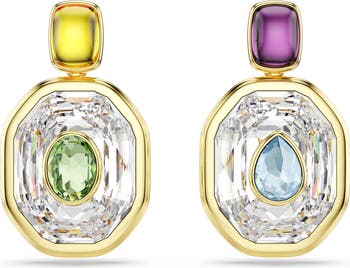 Drench your lobes in stunning Swarovski sparkle with artfully mismatched earrings illuminated by colorful, mixed-cut crystals and clear octagonal drops.