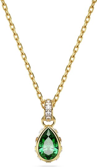 This stunning necklace brings exquisite sparkle to your look with its pear-cut pendant fitted with a vibrant green crystal complemented with square clear crystals around the edges and on the bail.