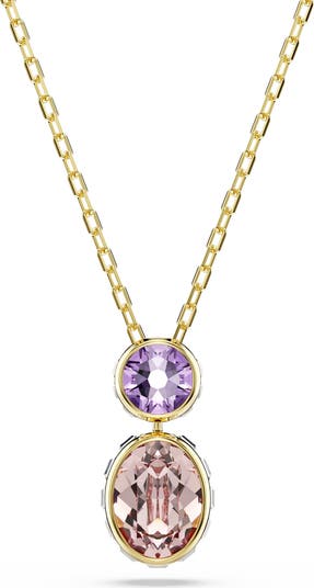 Faceted Swarovski crystals illuminate this polished necklace designed with a reversible pendant to be paired with your mood.