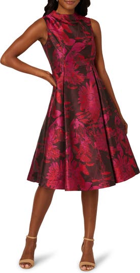 Chrysanthemum Jacquard Fit & Flare Cocktail Dress