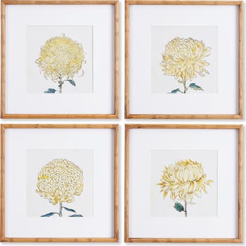 Ever-changing, the stages in the life of a chrysanthemum are captured in these captivating illustrations. Feminine in nature, they add a touch of soft yellow to powder room, kitchen or study.