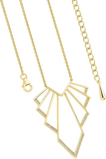Inspired by the iconic Chrysler Building in New York, this pendant from the Art Deco collection combines timeless design with luxurious gold vermeil. Set with sparkling white topaz gemstones, its geometric design is both simple and striking. Crafted from 18ct gold vermeil over solid sterling silver, this pendant is perfect for elevating any outfit. The adjustable chain length ensures a perfect fit for any occasion.