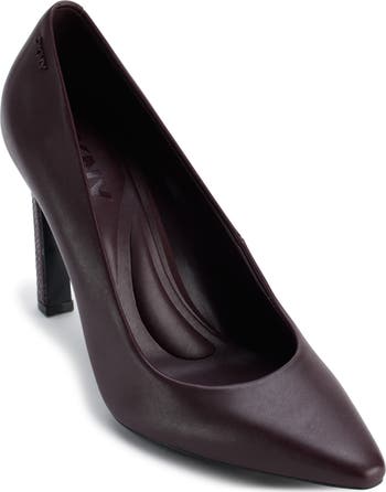 A pointy toe and slender heel balance a striking pump set on a cushioned footbed for comfortable wear.
