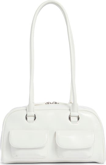 A retro bowling silhouette create a roomy bag that enhances the silhouette of casual and night-out ensembles while housing all the necessities.