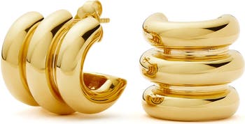 A ridged design heightens the modern sophistication of these gleaming hoop earrings that create an effortless stacked look.