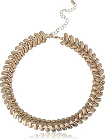Bold and statement-making, this chunky chevron chain collar necklace from BCBG brings modern glam to your accessory collection.