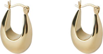 A high-polish finish and 18-karat-gold plating give powerful shine to these sterling silver hoop earrings.