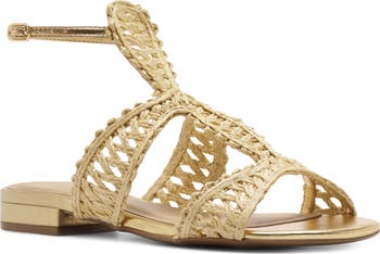 Keep your style light and airy with this woven sandal topped with a slim ankle strap.