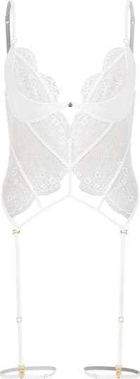 Ciara is a powerful expression of femininity with its lace and garter details. Its underwire structure and textured padding provide natural support. Delicate lace on the torso gently wraps the waist, highlighting your curves. Adjustable shoulder straps, detachable garter clips, and adjustable elastic bands around the thighs create a striking look. Complete the set with the Ciara Thong.