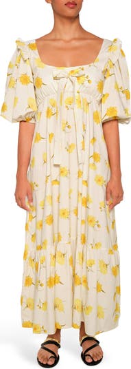 Voluminous frill-trimmed sleeves further the charm of this lightweight maxi made with an Empire waist for a flowy fit.