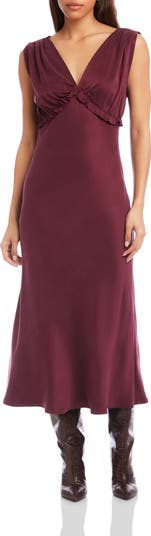 FIFTEEN TWENTY Cierra Ruffle Sleeveless Midi Dress, Main, color, Wine