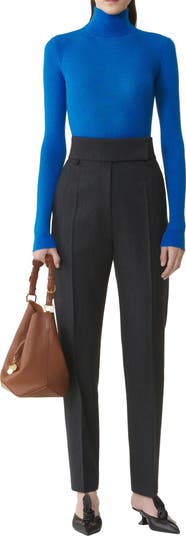 - High-Waisted Wool Flannel Cigarette Pants