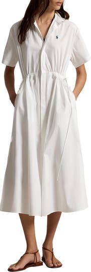 Adjustable cinched sides let you dial up or down the relaxed fit of a crisp cotton shirtdress authenticated with the beloved polo pony on the chest.