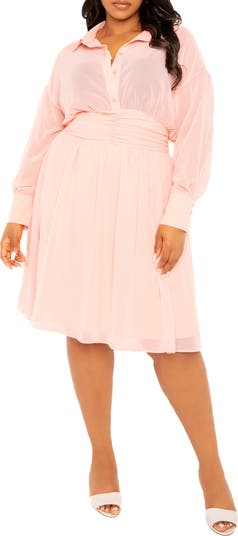 A gathered waist creates shape in this retro-chic shirtdress and gives it a blousy, two-piece look perfect for work or your weekend plans.