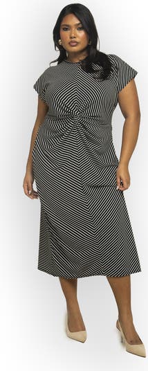 This monochrome midi dress is designed to flatter with its striking stripe pattern and gathered twist detail at the waist. Featuring a relaxed fit with short sleeves and a fluid silhouette, it offers both comfort and style. Perfect for work, dinner or weekend wear, it’s a versatile piece you’ll reach for again and again.