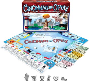 Cincinnati-opoly offers a delightful spin on the classic Monopoly game, featuring elements related to the city of Cincinnati, Ohio. These games serve as entertaining toys and collectibles, making them perfect gifts for teachers, city officials, firefighters, police officers, and individuals from ages eight to adult. It incorporates beloved landmarks and traditions, chili cheese coneys, whimsical flying pigs, cherished customs, riverboats, and a whole lot of fun.