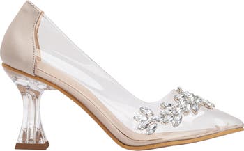 Forever & Always Shoes Cinderella Transparent High Heels, Alternate, color, Beige Faux Leather