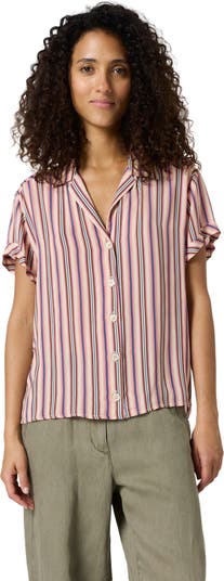 This short-sleeved shirt showcases a play of colorful stripes evoking a fresh and summery spirit. Its fluid cut and open collar provide a relaxed yet polished appearance. Easy to pair, it is a piece that instantly enlivens a simple outfit. It is crafted from a fine material with a very soft touch.