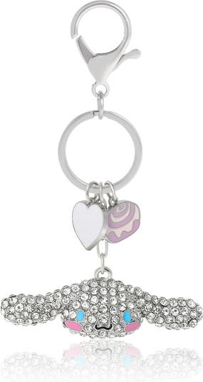 Sweet sparkle to go. Cinnamoroll shines in clear crystals with pastel candy and heart charms, all on polished silver‑tone hardware for easy clip‑on style.