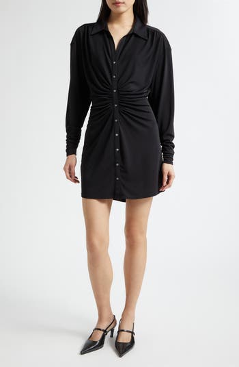 Rippled ruching gives shapely texture to this desk-to-dinner shirtdress that's full of versatile charm.