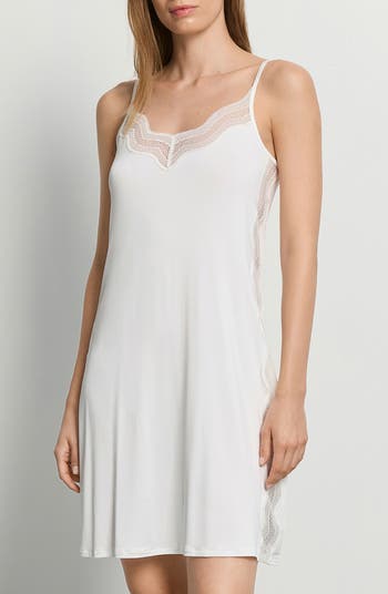 Scalloped tulle lace brings a hint of romance to this comfy slip made from a cooling viscose with just the right amount of stretch.