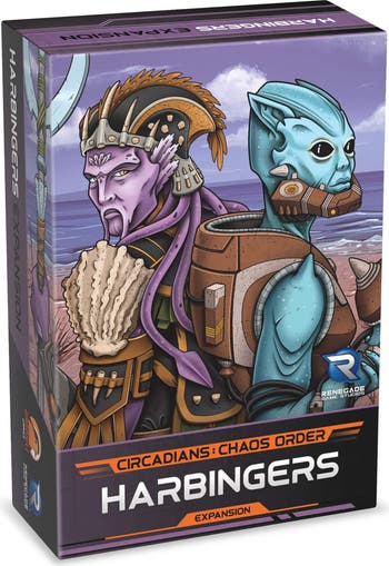CIRCADIANS: CHOAS ORDER HARBINGERS EXPANSION - An Expansion for the popular Circadians: Chaos Order. A competitive, confrontational area control game with highly asymmetric Factions. Each Faction now has 2 new Leaders to choose from. After deploying their starting Leader during setup, they must select 2 of their other Leaders, and return them to the box. This provides a lot more variability and strategies to discover within each Faction. Enjoy this strategy board game that will allow for fun and competition. Perfect for ages 14 and up, 2-5 players, and 2-4 hours of pure fun! This expansion of Circadians: Chaos Order includes 12 Leader Cards, 12 Tactic Cards, 6 Attribute Cards, 2 Rule Cards, 12 Standees, and 2 Production Tokens. Game Type: Strategy.
