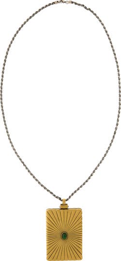 The '80s-throwback vibes echo throughout Dario Vitale's spring '26 collection, referencing Gianni Versace's early aesthetic, and this runway-featured locket necklace takes its place in the accessory pantheon with its bold scale, brand iconography and functional practicality as a mirror compact and money/card clip.