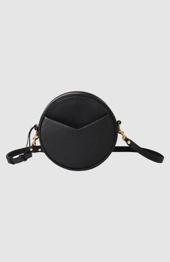 The Circle Bag Crossbody is a timeless leather bag with a front V-pocket, interior zipper pocket, and adjustable strap—crafted to move with you every day.