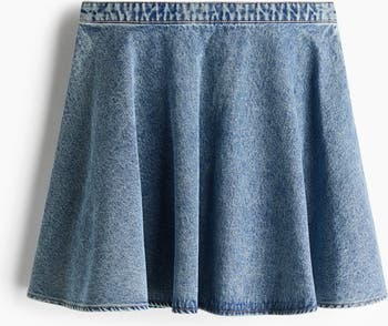 Short, circular skirt in cotton denim with a high waist and a concealed zip at the back. Unlined.