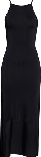 Finely knit viscose and expert tailoring add up to a signature Courrèges silhouette that transforms from body-con bodice to languidly draped circle-edge skirt.