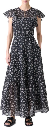 Circle Print Burnout Stripe Flutter Sleeve Maxi Dress